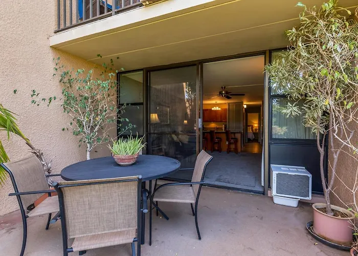 Kauhale Makai 514 Hotel Kihei, placed 1.6 km from Mai Poina 'Oe ia'U Park, entices guests with a hot tub, sauna facilities and an outdoor swimming pool. At this Kihei hotel, located a few steps from the Tranquil Waipuilani Beach Park, you can spend the day in an outdoor swimming pool or keep active with windsurfing, snorkelling and hiking.